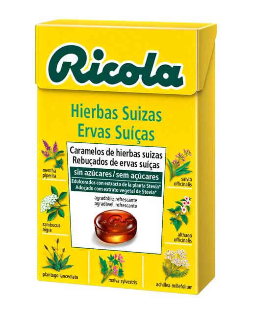 Los caramelos Hierbas Suizas sin azúcar (con estevia) Ricola poseen un suave efecto balsámico, aliviando las vías respiratorias y la garganta. Además, son naturalmente refrescantes. Formato: caja de 50 g. Las propiedades de las hierbas suizas permiten refrescar y suavizar la garganta disfrutando al mismo tiempo de su agradable sabor.
