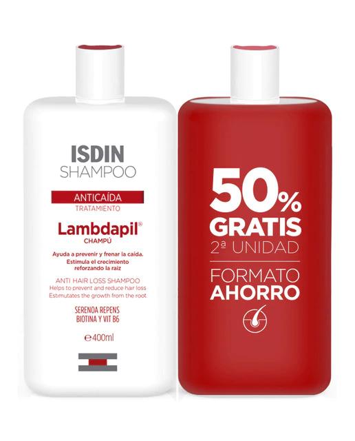 El Duplo Champú Anticaída Lambdapil de Isdin recupera cuanto antes la vitalidad del cabello. Este producto, en un práctico formato de 2 x 400 ml, ayuda a prevenir y frenar la caída del cabello, estimulando su crecimiento gracias a su contenido en Serenoa Repens y al complejo multiactivo Trichogen. Además, promueve la estimulación del folículo piloso y normaliza la secreción de las glándulas sebáceas.
