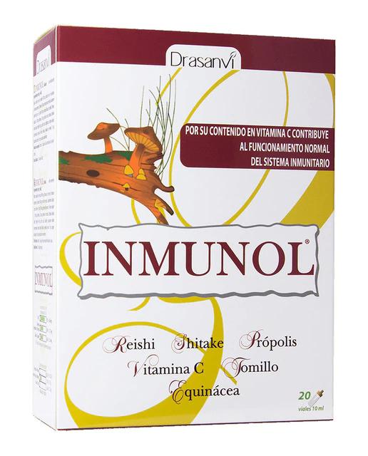 Inmunol es un complemento alimenticio formulado con hongos de utilización milenaria, como el Reishi y el Shiitake, minerales como el cobre y el selenio, y vitamina C, que contribuyen al mantenimiento del sistema inmunitario en condiciones normales. Además, contiene tomillo, equinácea y propóleos. Formato: 20 viales.